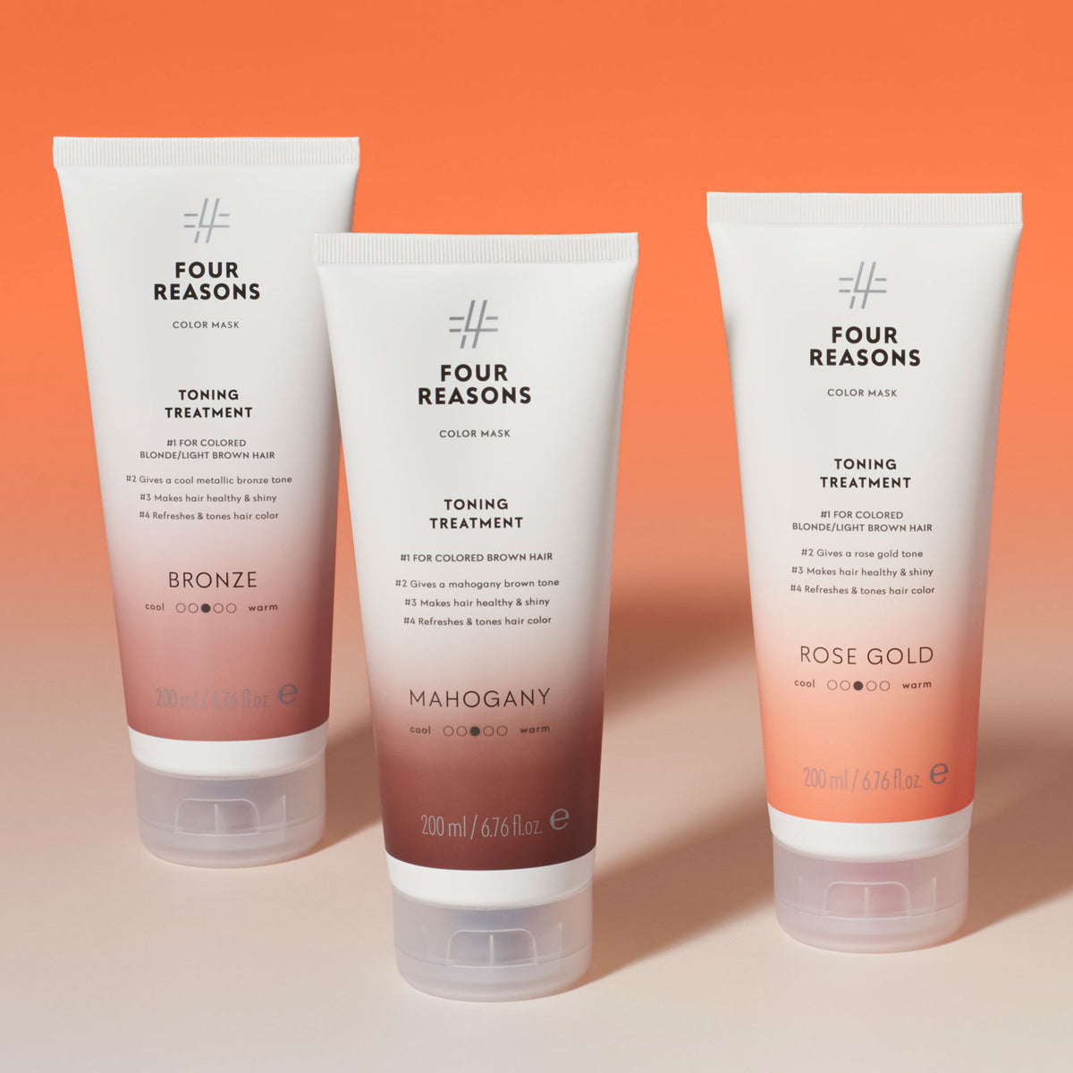 Four Reasons Color Mask is a modern selection of toning washing and haircare products that allow you to emphasize and maintain hair tone either subtly or boldly. The nourishing and pigment-rich composition is vegan-friendly and extends the lifetime of a dye while maintaining its intensity. With these stunning tones you can maintain and tone the trendiest hair dyes at home!